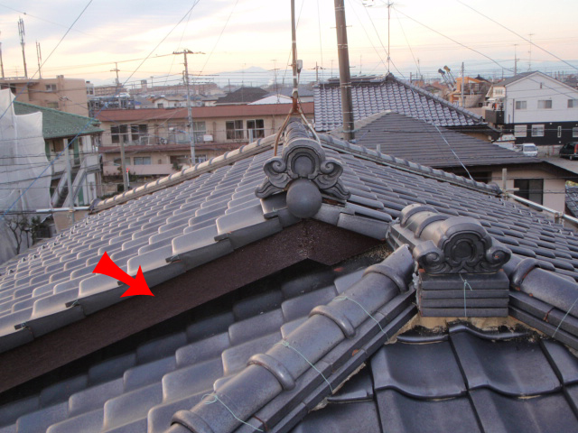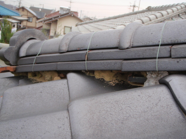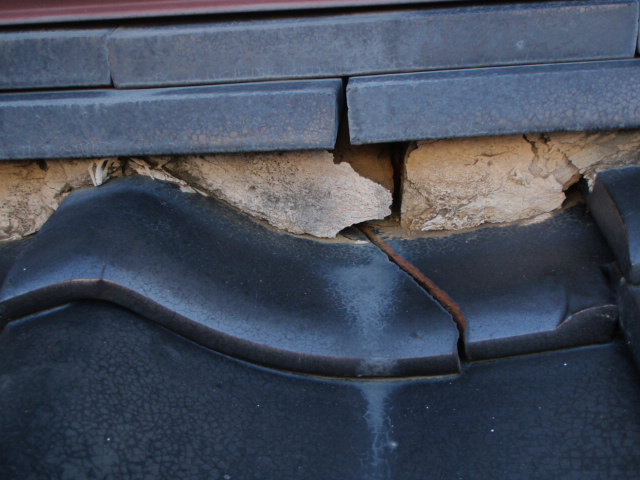 ③漆喰が痛んでいました。瓦も割れています。