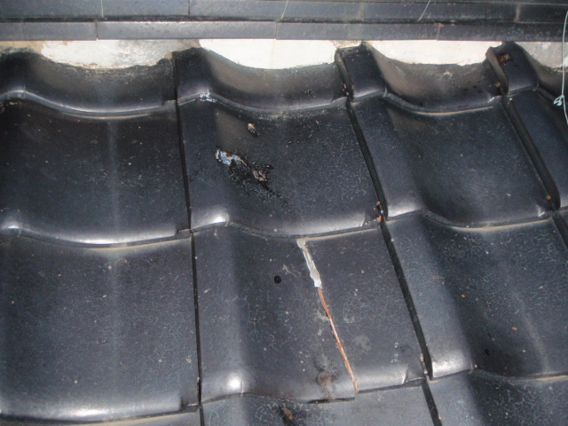 ④瓦も割れていました。