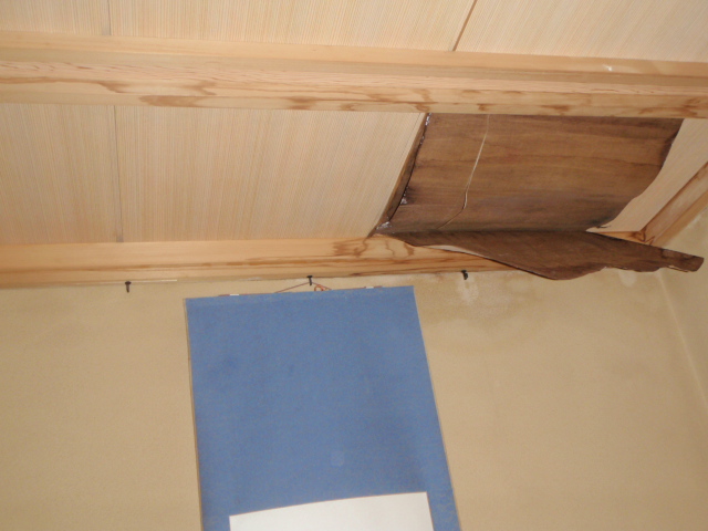 天井の内部は浸入した水で錆びてしまっていましいた。