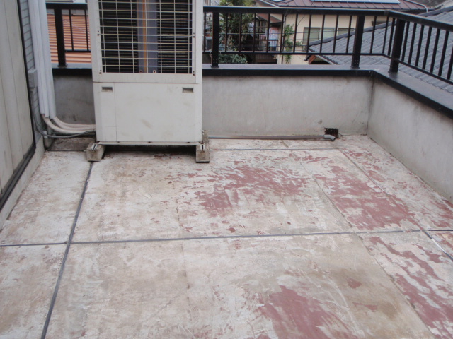 まず3Fベランダの人工芝を剥がして、掃除します。