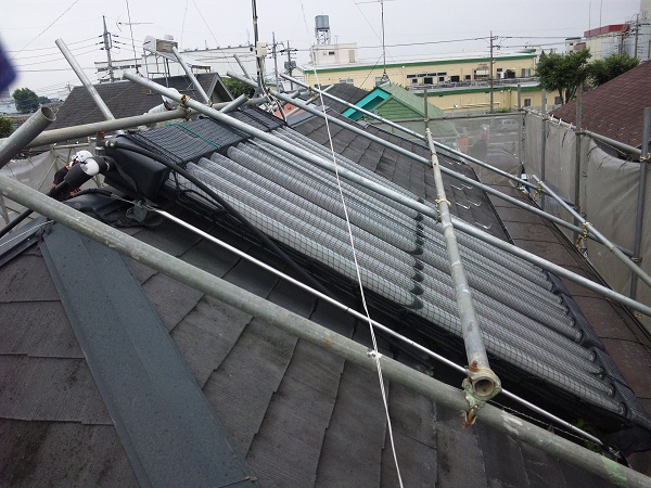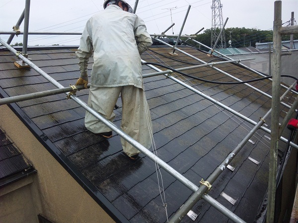 屋根の上は危険なので慎重に、そして丁寧に作業します。