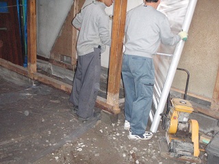 転圧が終わったら、防湿シートの施工です。