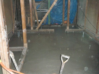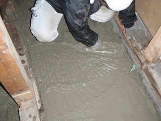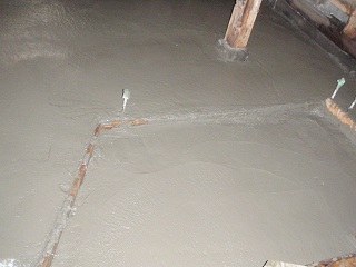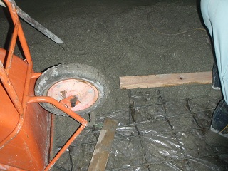配筋が終わったら耐圧コンクリートを流し込みます。