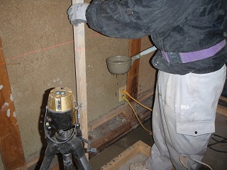 立上がり天端を狂いなくレーザーでレベラーを施します。