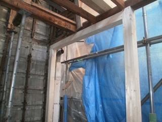 旧構造体を金物で引き寄せます。