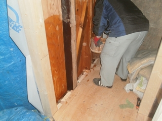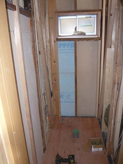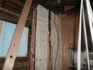 ユニットバス周辺は湿気が多いため、高性能ウレタン材を吹き付けます。