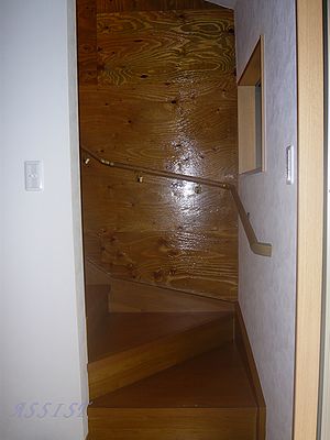 85年前の階段 大正時代にタイムスリップしたような 趣のある階段ですが、 安全面ではやはり心配です。 さて、 どのように生まれかわったのでしょうか。 写真でご覧下さい。 写真はすべてクリックで大きくなります。 この奥が階段ですね。 壁の仕上がりも見逃せませんね。 手すりも付いて安全、安心。 階段の上も見てください。 いつもながら アイディアを凝らしたデザインが素敵ですね。 ちょっとしたことですが このような『センス』の部分は 頼まれたからといって できるものではない、と思います。 当社の自負するところです!