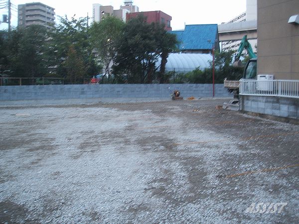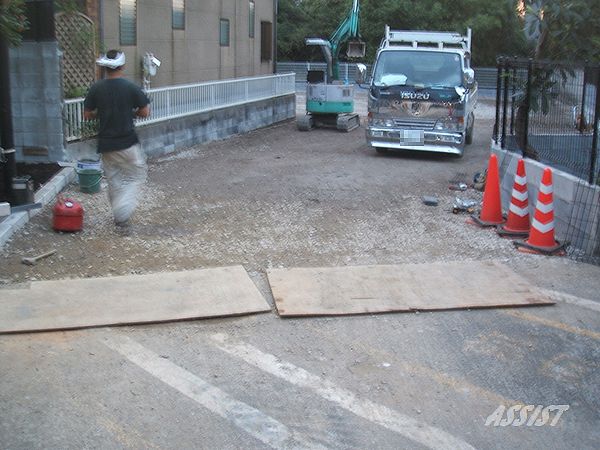 かなり広い駐車場です。 いよいよ舗装工事に取り掛かります。